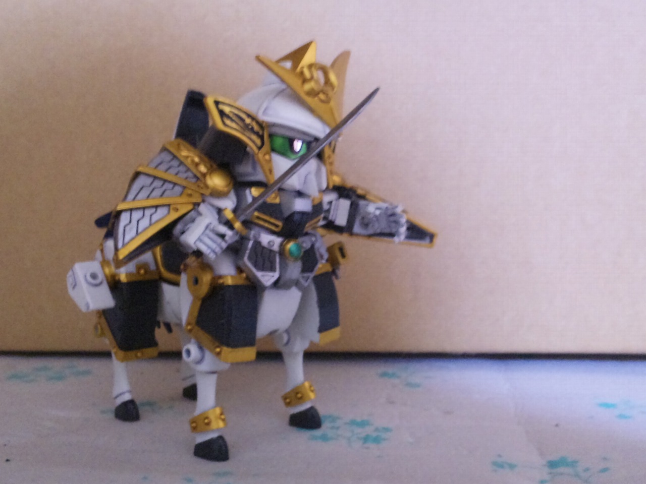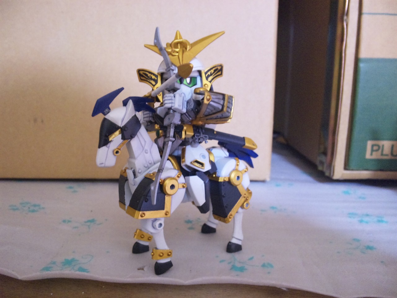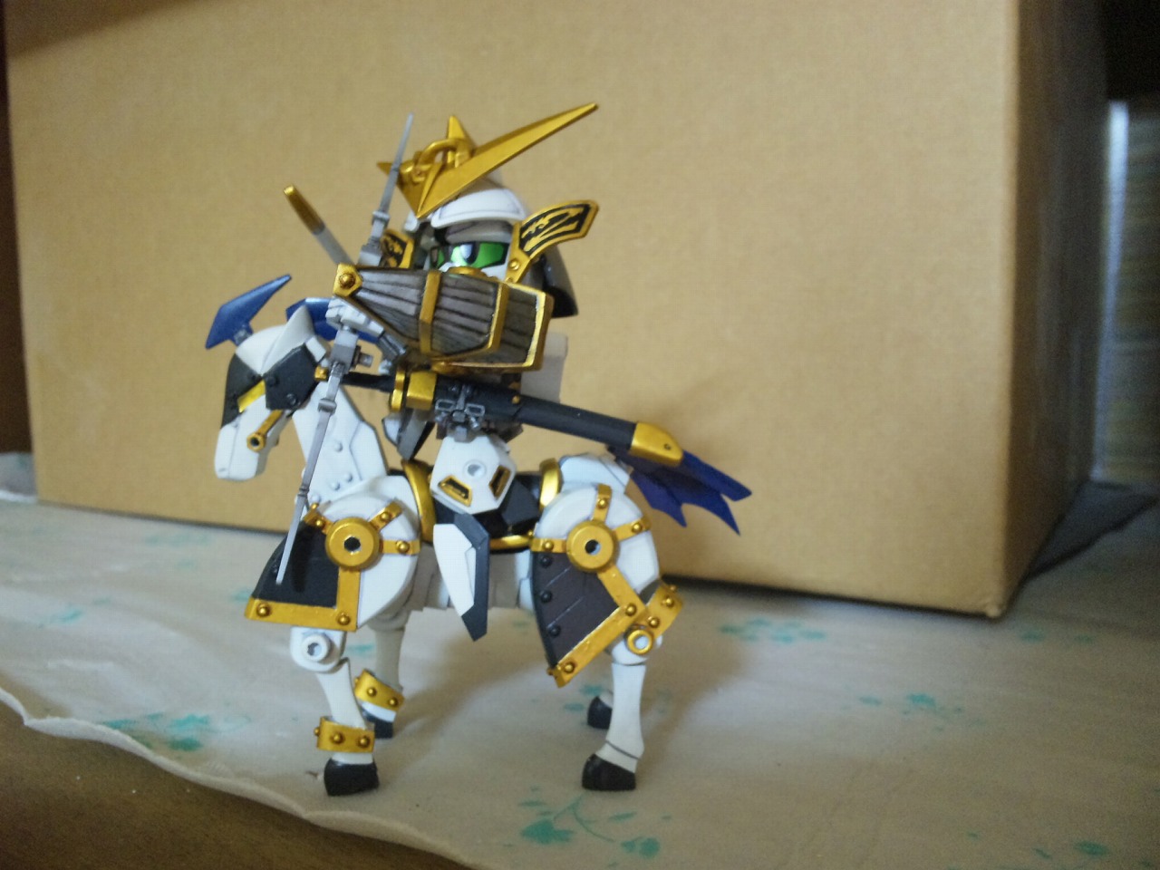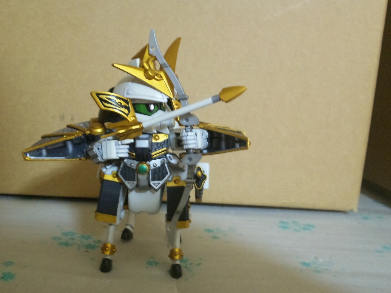 × [PR]上記の広告は3ヶ月以上新規記事投稿のないブログに表示されています。新しい記事を書く事で広告が消えます。 戦国武将「上杉謙信」をモチーフにしたSDガンダム 馬の大型化と謙信本体への徹底した関節追加と鎧の干渉を抑える改修のおかげで、流鏑馬ポーズも決まるようになった。 キット附属の馬はあまりにしょぼかったので最新シリーズ「三国伝」から戦馬を流用。 デザインも全然違うしギミックも搭載してないので大変だった。 今回の見せ場の一つは、後述する変形機構と腰関節可動の両立 こいつには馬と合体してケンタウロススペシャルになるギミックがついている。 馬を大型化しなければいけないが、これをオミットするのは余りに惜しい。 なので変形機構を考え実装させた。謙信本体よりも馬のほうがよっぽど手がかかっている。 ケンタウロススペシャル! キット附属の刀は大陸風の剣だったが、日本の武将と言う設定なので日本刀に変更。 人馬形態でも弓を撃つ なんと進化しているのはガンプラだけじゃなかった!俺も成長していた! 謙信の左に写るのは、謙信の元になったキット「疾風剣豪 精太」2004年ごろ発売 兜飾りと成型色以外は同じ仕様。 一番下は馬の比較。左から三国伝戦馬、謙信用馬、キット附属 PR